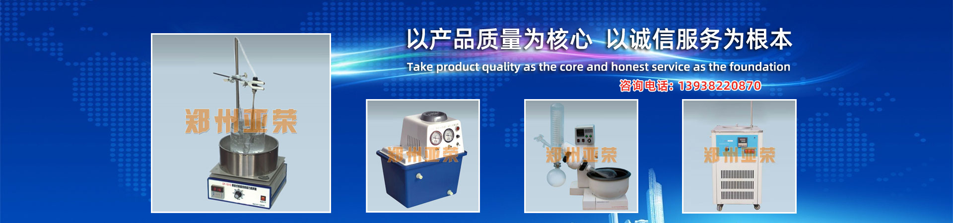 鄭州市亞榮儀器有限公司是主要銷售教學儀器的專業廠家,主要生產旋轉蒸發儀雙層玻璃反應釜、旋轉蒸發器、循環水真空泵玻璃儀器氣流烘干器低溫冷卻液循環泵真空抽濾器、電熱鼓風干燥箱、真空干燥箱、水熱合成反應釜、高壓反應釜、數顯恒溫電熱套、高溫油浴鍋、磁力攪拌器、超聲波清洗器、水(油)浴鍋、冷凍干燥機、智能玻璃恒溫水浴、水槽,臺式高速離心機、紫外分析儀、控溫儀、振蕩器、微波化學反應器、顯微熔點測定儀、聚四氟乙烯攪拌棒、攪拌塞、攪拌子、升降臺等多種型號的教學儀器。